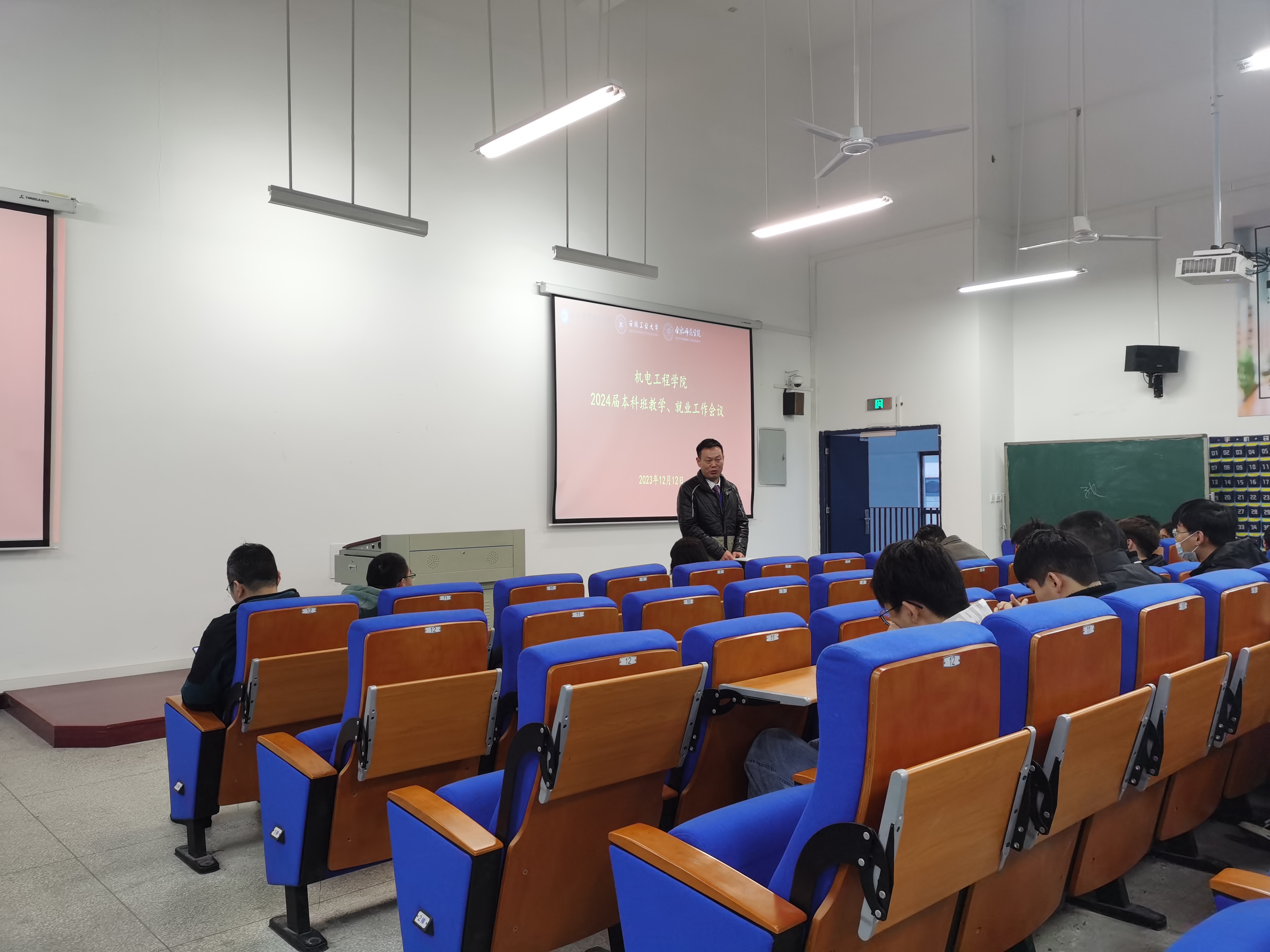 12月12日下午,sunbet申搏于北教201教室举行了针对2024届联合培养专升本班级的教学和就业工作会议。会议由sunbet申搏经理胡木林主持,院领导班子、各教研室主任、班级辅导员以及2024届电气工程及其自动化专业(专升本)、机械设计制造及其自动化专业(专升本)同学参与了会议。会议旨在对员工们进行本学期考试、毕业论文开题等工作的部署,并对下学期的毕业论文等进行了重点部署,并提出相关要求。