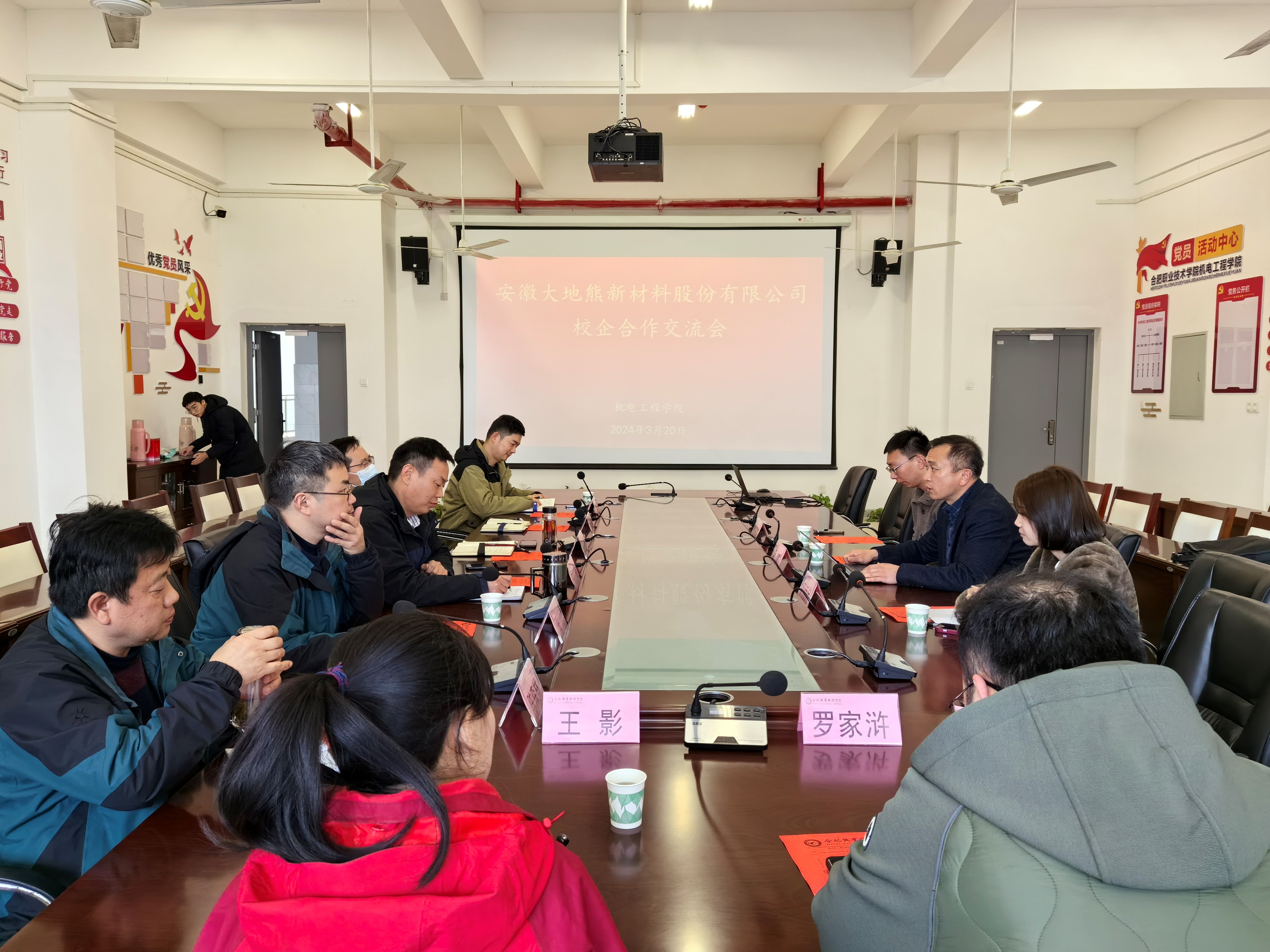 3月20日下午,安徽大地熊新材料股份有限公司行政总监吕涛等一行3人来访sunbet申搏,公司党政负责人及相关教研室专业老师人参加了此次对接,双方就产学研合作、人才培养及员工实习就业等方面工作进行了深入的交流与探讨。