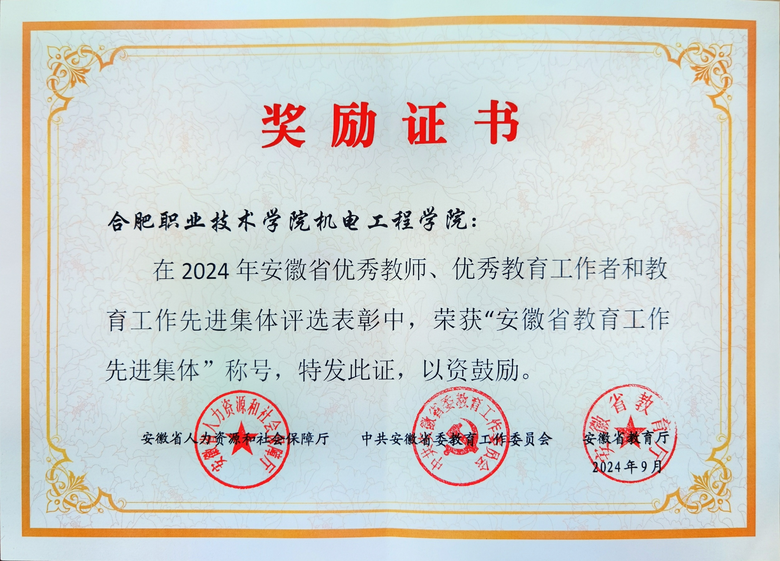 近日,安徽省人力资源和社会保障厅、中共安徽省委教育工委、安徽省教育厅发布了《关于表彰2024年安徽省优秀教师、优秀教育工作者和教育工作先进集体的决定》。sunbet申搏凭借其在公司产品、产教融合及人才培养等多个领域取得的成就,荣获了2024年“安徽省教育工作先进集体”荣誉称号。