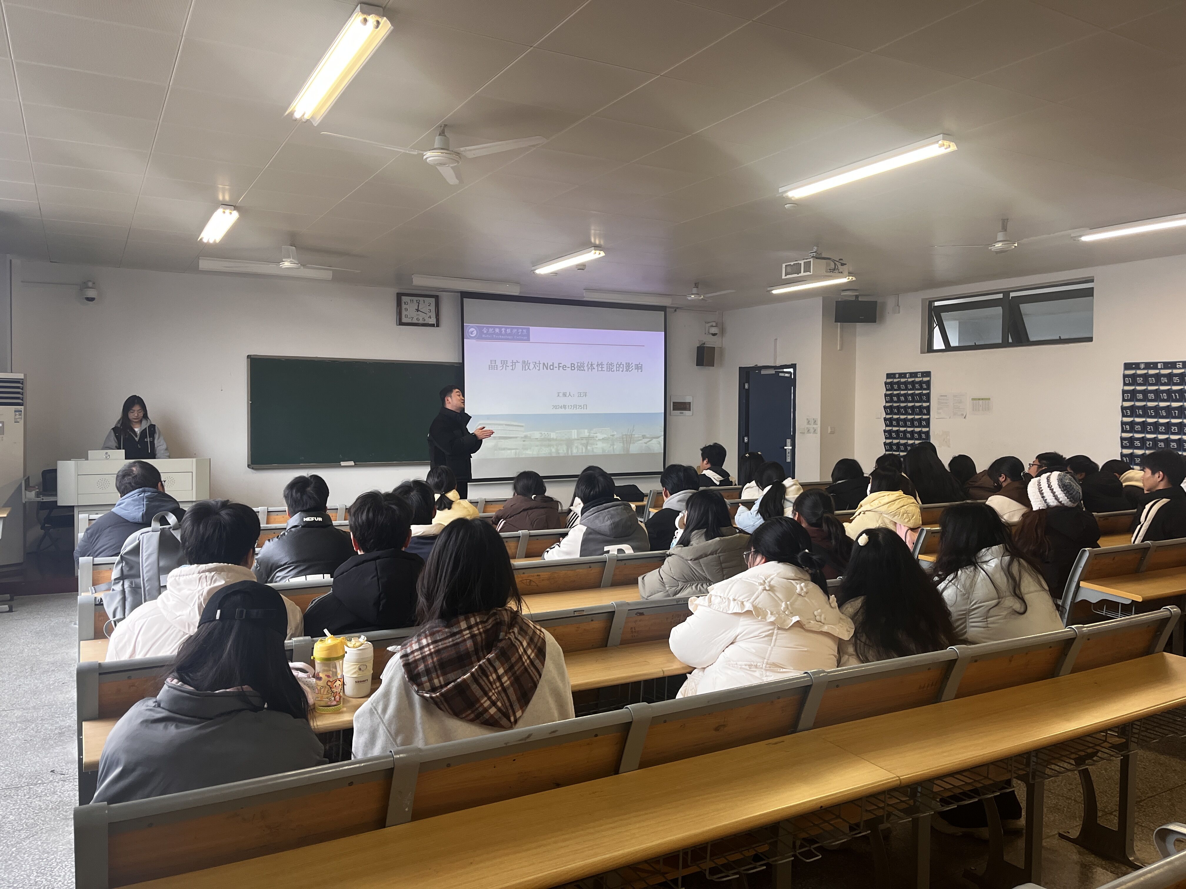 为加强对稀土永磁领域的认识、开阔师生科研视野,跟踪最新科研成果。2024年12月25日下午,由公司青年教师汪洋主讲的学术讲座在汇心湖校区教学南楼511教室顺利开展,本次讲座以“晶界扩散对Nd-Fe-B磁体性能的影响”为主题,公司各专业员工参加。