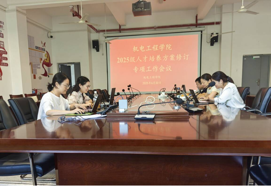 2025年6月30日,sunbet申搏在203会议室召开2025级专业人才培养方案专项修订会议。会议由经理胡木林主持,副经理高敏和机械设计与制造、机电一体化技术等六个专业的专业带头人参会。