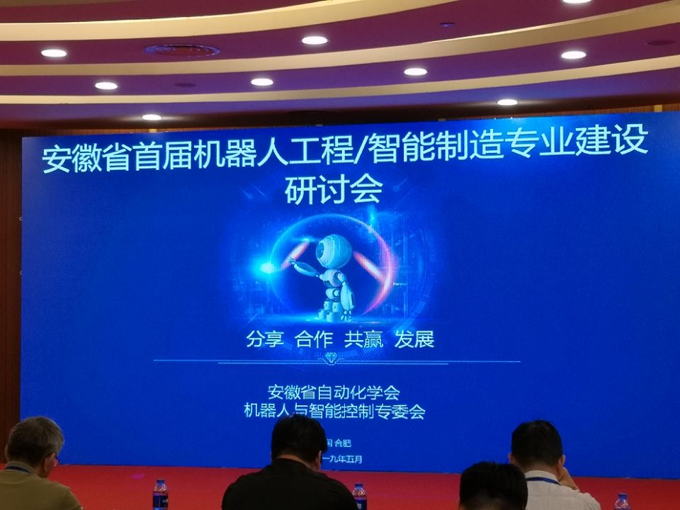 2019年5月24-5月26日,安徽省自动化学会(机器人与智能控制专委会)在合肥举办《安徽省机器人工程智能制造专业建设研讨会》,省内知名本科院校和高职院校受邀参加,公司副经理胡木林受邀为研讨会作报告。