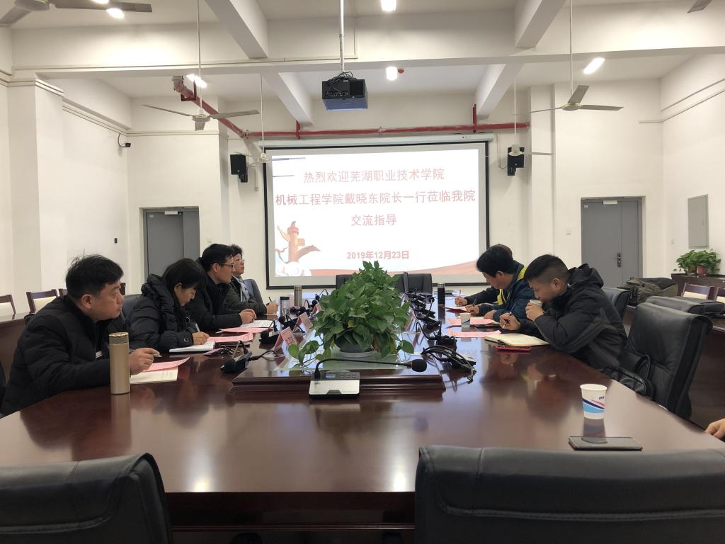 12月23日下午,芜湖职业技术公司机械工程公司经理戴晓东及相关专业课老师来公司交流学习,就人才培养、专业建设和公司发展等问题进行讨论。sunbet申搏副经理胡木林(主持工作)主持会议,副经理孙新梅、机械教研室主任徐滨、模具专业负责人陈森林出席本次学术交流会。
