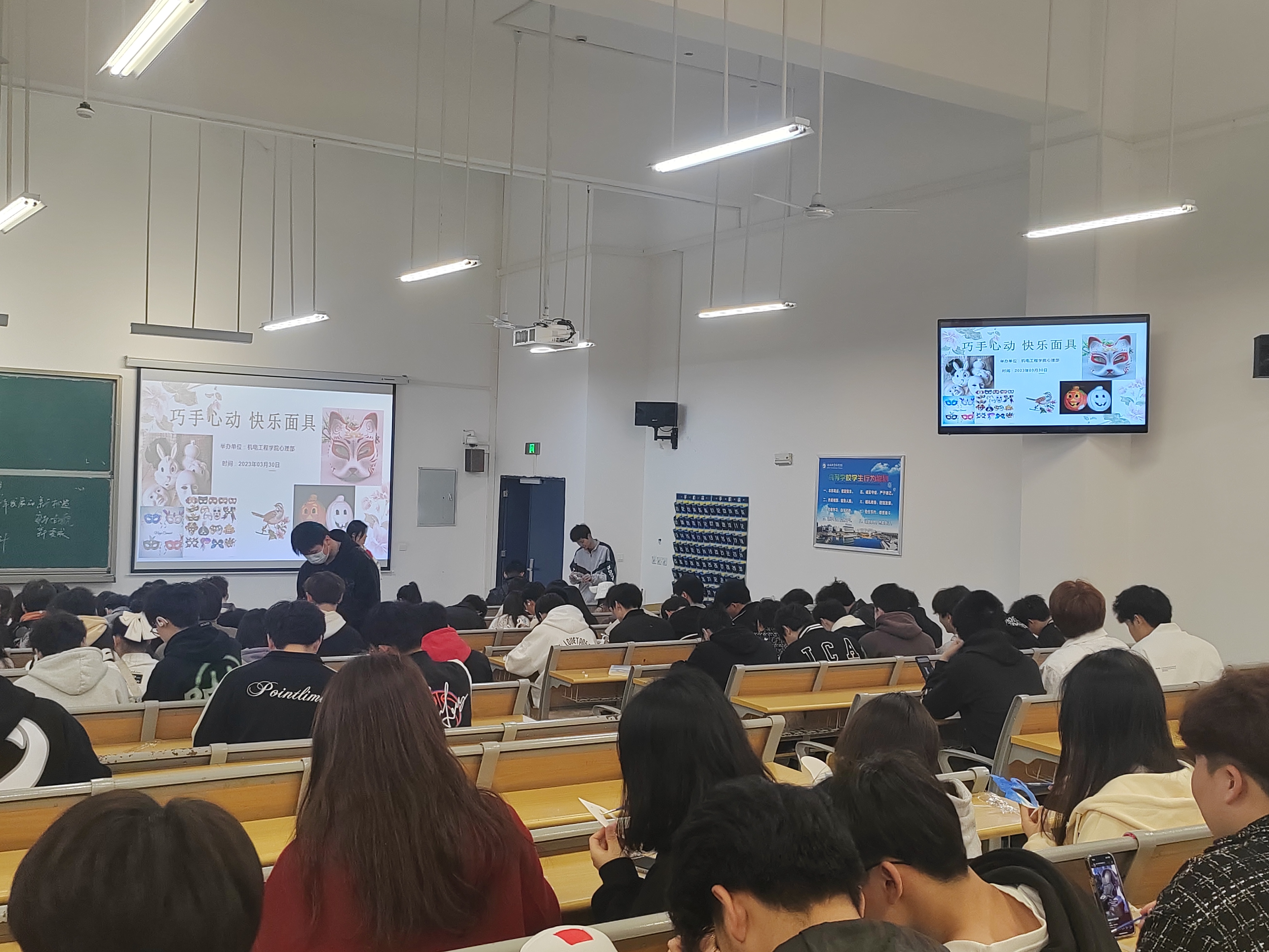 本次活动吸引了近200人参加,在教室里大家用画笔勾勒线条,互相讨论面具图案。一幅幅生动灵趣的图案在面具上一一呈现,有憨态可掬的猪八戒、有慈眉善目的圣诞老人、有小巧玲珑的狐狸等等,大家互相欣赏彼此的面具图案,在教室里欢声笑语。