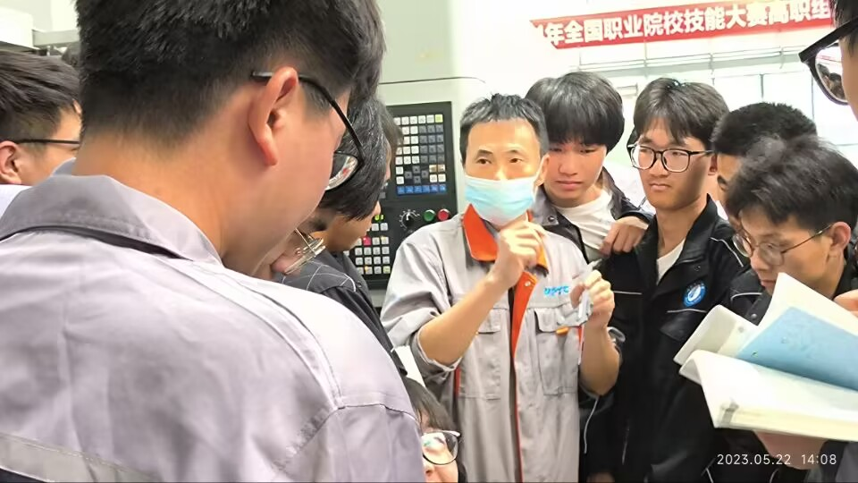 5月22日下午,sunbet申搏在机电楼一楼数控加工中心组织开展了2023年职教活动周之“示范课”公开教学活动,本次教学活动主讲教师为周敬勇教授,教学内容为《数控加工技术》课程的数控加工和编程实训技能训练,sunbet申搏所有无课老师和21机电3班全体同学参加了此次“示范课”教学活动。