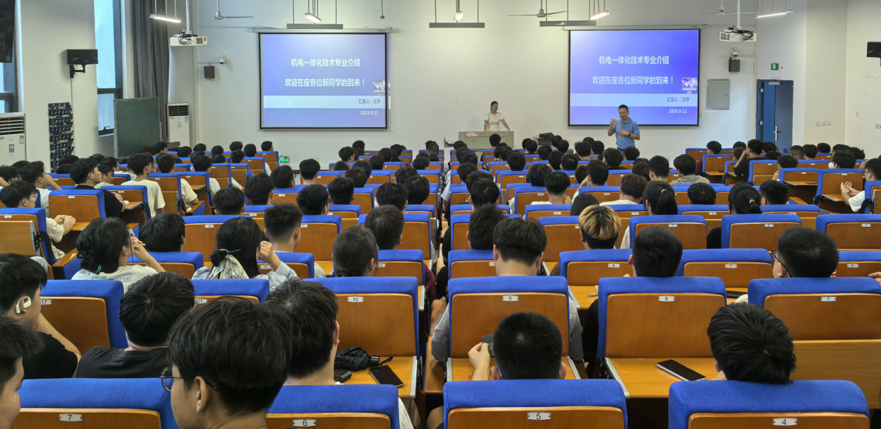 为做好2024级新生入学教育工作,引导新生进一步了解所学专业,sunbet申搏于9月11日下午开展了2024级新生专业介绍活动。机电工程公司党政领导班子成员,各专业建设教师和全体2024级新生参加了此次活动。