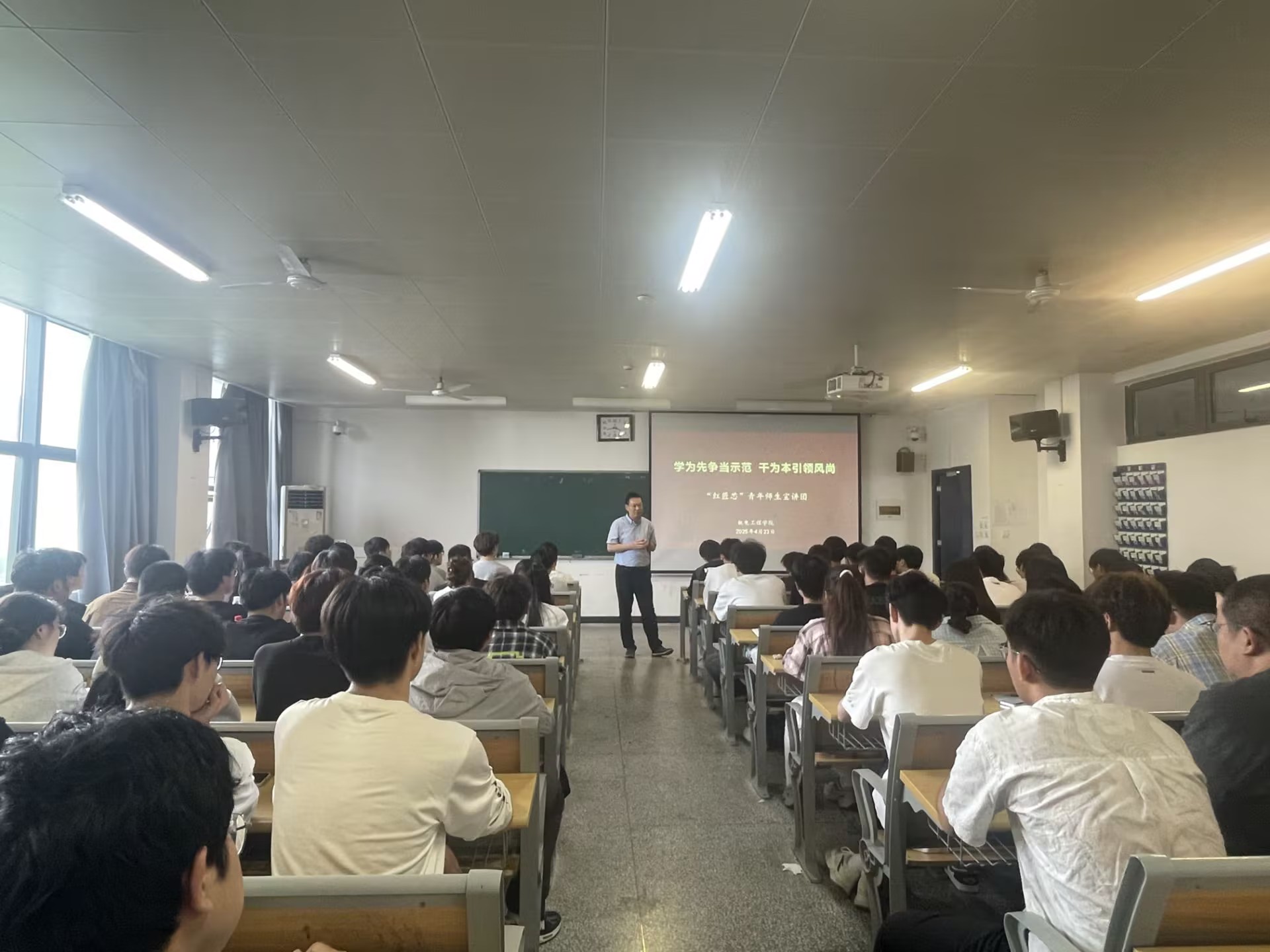 本次宣讲主题是学为先争当示范,干为本引领新风。丁迎春从强化政治理论学习、模范引领学风建设、重视行为规范养成、涵养职业道德精神、积极参加志愿服务等方面对入党积极分子提出了殷切期望。他结合大国工匠的匠心坚守、优秀毕业生的奋斗历程、优秀党员的责任担当,与现场学子展开深度对话,宣讲现场互动频繁、气氛热烈,彰显了理论宣讲的感染力与引领力。