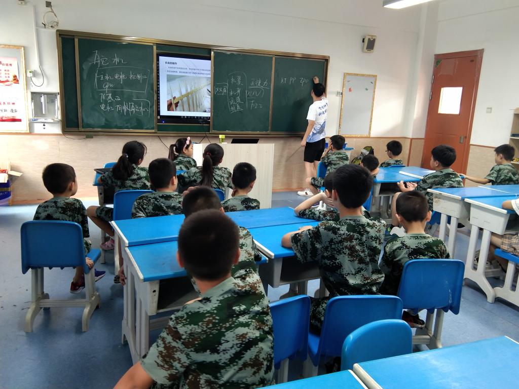 少年儿童是祖国的未来和希望,科普知识的宣传也要从小朋友做起。飞行梦之队于7月3日来到了宣讲目的地——肥东县尚真花园小学。队员们在校方老师的带领下,前往培训教室,准备给小朋友们上第一课。开班课是本次实践活动的开始,队员们先和小朋友们进行简单地互动,讲解航模科普知识。随后,又来到在操场,进行航模飞行表演等户外活动。短短几个小时的接触,队员们和小朋友们建立起了深厚的友谊。尽管他们的调皮有时会令队员们不知所措,但他们的纯真与友善令队员们沉醉其中。我们深深地喜欢上了这群可爱活泼的孩子。第一天的活动就这样结束了,给大家带来了不一样的体验和一段难忘的时光。