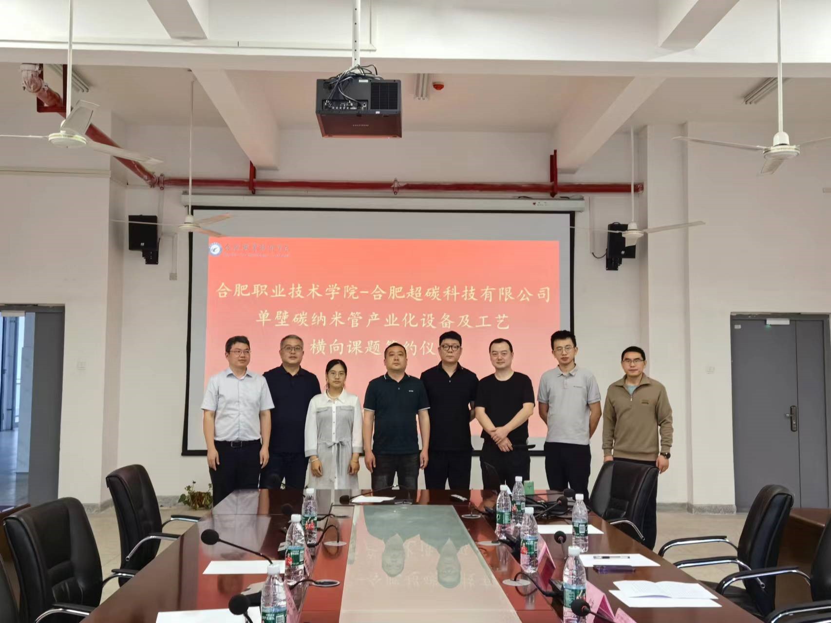 5月27日下午,sunbet申搏官网-合肥超碳科技有限公司单壁碳纳米管产业化设备及工艺横向课题签约仪式在sunbet申搏2楼会议室举行。合肥超碳科技有限公司法人代表王储携团队7人应邀参加,sunbet申搏崔霞博士团队和相关人员参加了签约仪式。