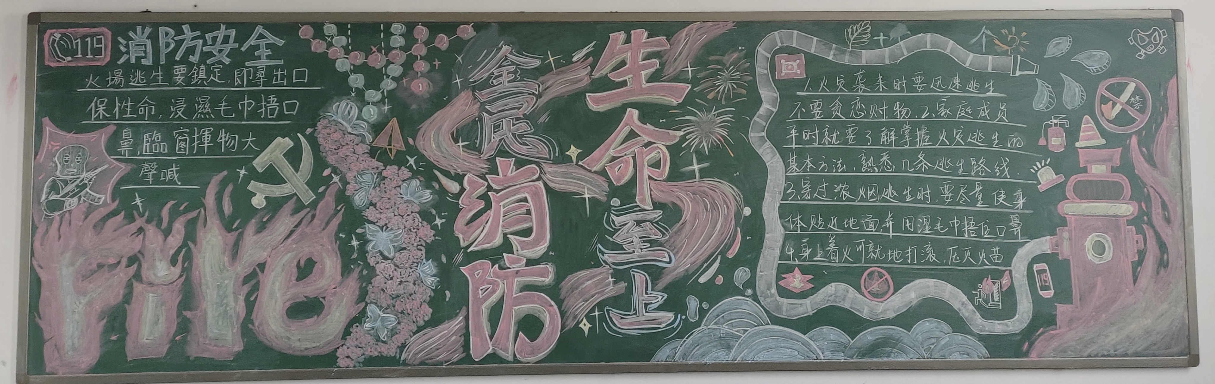 每年的11月为全国消防宣传月,为了提高公司师生的消防安全意识,增强员工的自救自护能力,构建和谐安全的校园环境,公司开展了消防安全主题的黑板报绘制评比活动。