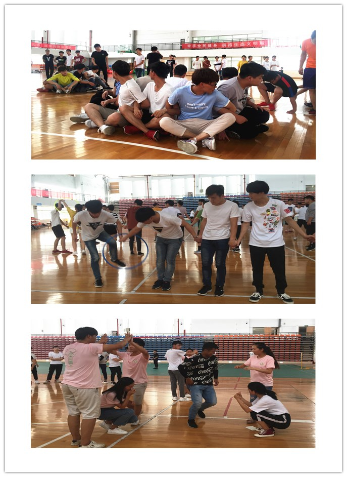 活动伊始,大家随机分组,选队长、取队名、喊口号,气氛十分热列、同学们笑声不断。此次活动共分为三个游戏环节:坐地起身,穿越呼啦圈和松鼠搬家。“坐地起身”游戏在提高同学们运动能力的同时,也考验着团队的整体作战能力;在“穿越呼啦圈”游戏中,队员们拉起手来,只利用身体将呼啦圈传递下去,考验了队员们的合作意识;“松鼠搬家”游戏让同学们意识到平时生活中要积极地适应新的环境,主动与人交往,提高自己有效竞争的能力。