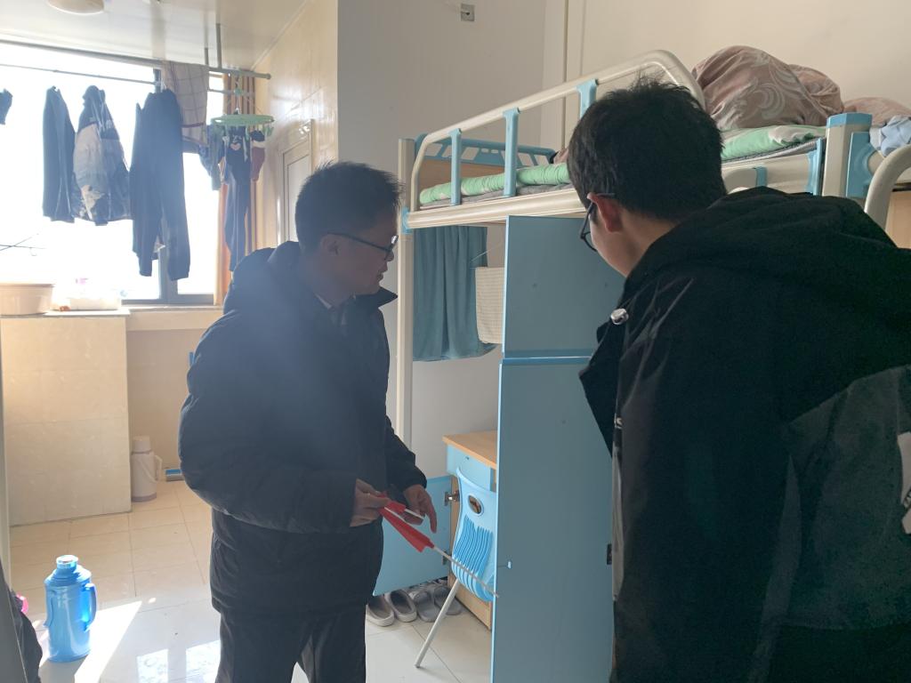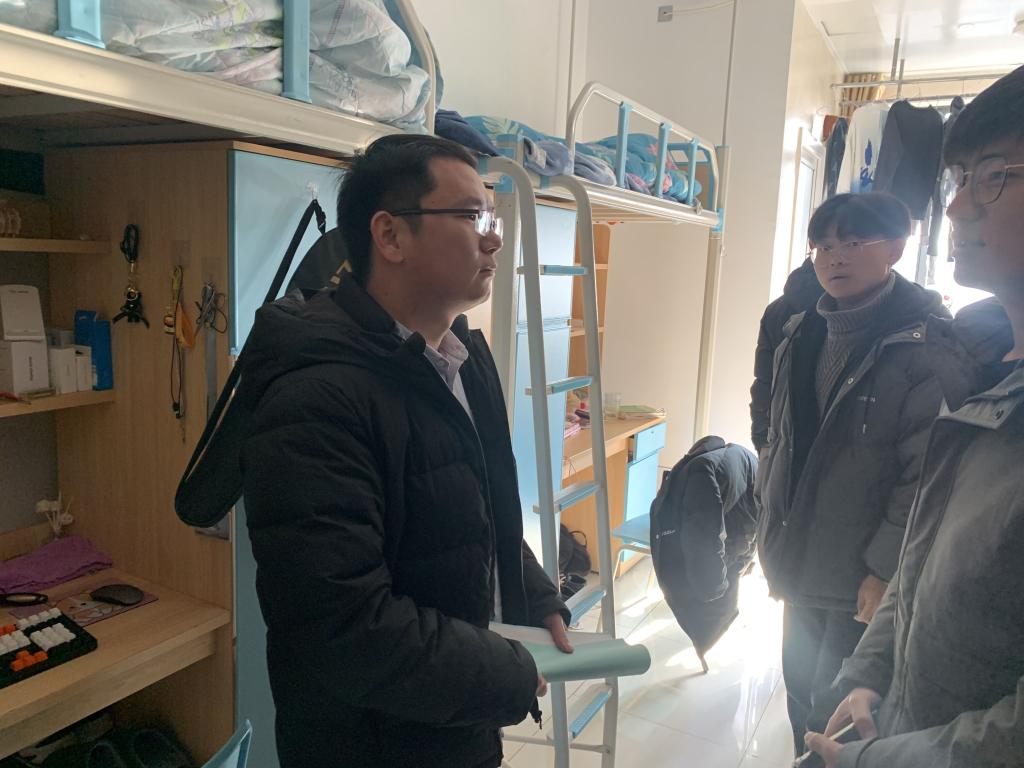 12月29日下午一点,机电工程公司党总支副书记(主持工作)王克勇带领全体辅导员组织开展了宿舍安全检查活动,重点检查了男宿舍用水用电安全。提醒同学们在平常的生活中提高安全意识,禁止使用大功率电器,不要私拉电线;冬季天气干燥,注意防范火灾。叮嘱寝室成员之间要和睦相处,建立友好的寝室关系。嘱咐同学们要落实好晨午晚检制度,勤开窗,多通风;寝室长要定时对寝室进行全面消毒,切实做好疫情防护工作;同时嘱咐同学们注意天气变化,穿衣保暖,适当锻炼,养成良好的卫生习惯。同学们纷纷表示会自觉遵守公司的规章制度,注意用水用电安全。