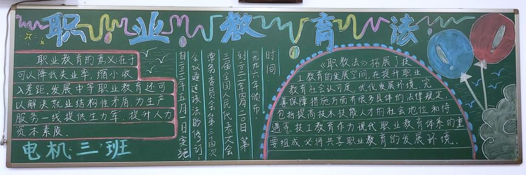 活动期间,各班级积极响应公司号召,结合专业特色,收集大量《职业教育法》相关材料,群策群力,巧妙设计,精心描绘,将自己对《职业教育法》的所思所悟都绘制成黑板报的形式。员工在制作和半包的过程中,加深了对《职业教育法》的学习和理解,提升了专业自信。