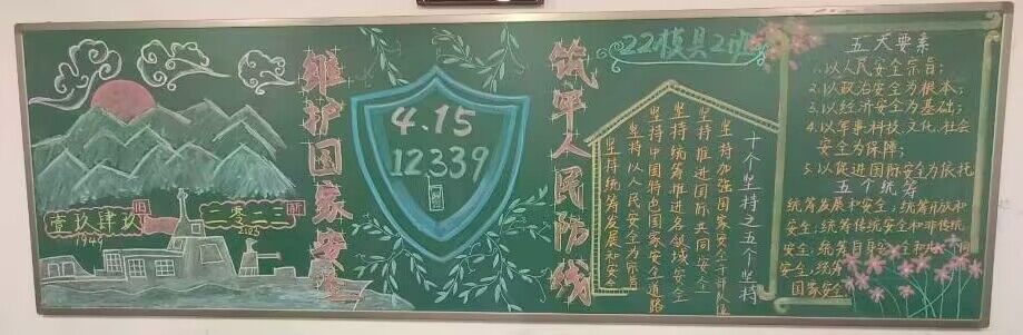 本次黑板报以“4·15全民国家安全教育日”为主题,贯彻总体国家安全观,增强全民国家安全意识和素养,夯实以新安全格局保障新发展格局的社会基础。sunbet申搏22级各班级积极准备、认真设计,在沉浸式的绘画中,同学们更加深入理解总体国家安全观,增强自身维护国家安全的责任感、使命感和自觉性、主动性。