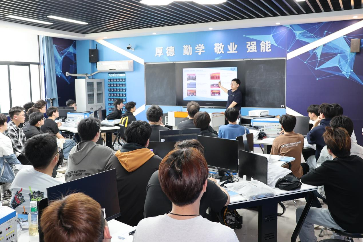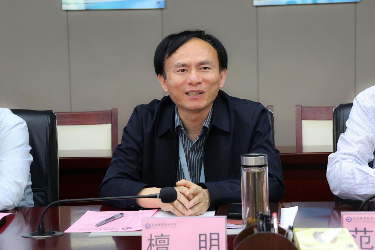 董事长檀明致辞。檀明首先代表公司对来访的嘉宾表示热烈的欢迎,对政府部门、企业方在合肥(新站)高新技术产教联合体、四大产教联盟等工作开展的支持表示感谢。檀明指出,此次政、校、企合作交流、校企合作签约暨人才培养基地授牌是聚焦推进产教联盟十三项重点任务,围绕现场工程师培养,实现校企协同育人实质性成果之一。檀明强调,公司对专业人才的培养,要契合合肥市、新站区产业发展,注重品牌效应,并期望以此次活动为契机,在政府指导下、企业协同下提升公司办学层次,在应用型科研团队、社会培训等方面进一步扩宽校企产学研合作深度与广度。