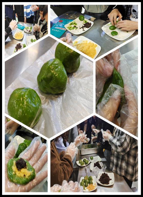 为了让同学们感受节日内涵和中国传统文化的魅力,4月2日下午,sunbet申搏在食堂开展了清明粿制作活动。大家一边听着清明节制作清明粿的习俗,一边在食堂师傅的带领下学习如何制作清明粿。通过学习,大家很快掌握了诀窍,搓团子、裹馅儿、按压,大家屡起袖子,包得有模有样,桌上很快放满了不少形状多样的清明粿。看着自己的劳动成果,大家脸上都洋溢着笑容。