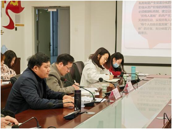 在最后一堂党课上,支部邀请了公司党委委员、组织人事部部长张如宝为大家授课。张如宝从习近平新时代中国特色社会主义思想关于共同富裕的理论渊源以及对马克思主义共同富裕理论内涵的丰富、实现路径的拓展三个方面出发,深入解读习近平新时代中国特色社会主义思想对马克思主义共同富裕理论的丰富与拓展。他寄语公司青年学子,新时代的青年要有理想主义追求,要志存高远,要有初生牛犊不怕虎的胆量和勇气,要积极向优秀青年代表学习,在尽职尽责中成长成才,在劈波斩浪中开拓前进,在攻坚克难中创造业绩。
