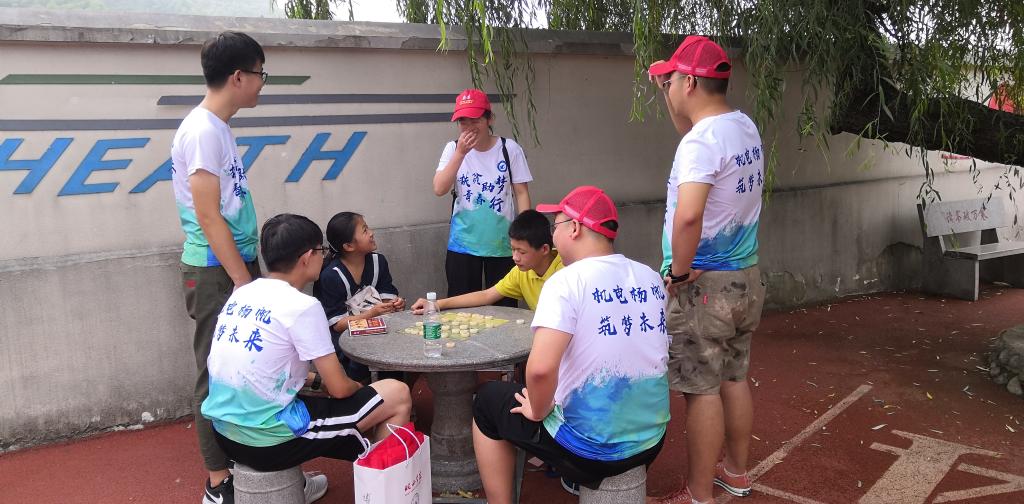 短暂的落脚后,我们便开始寻找我们的第一个“蚂蚁宝贝”。骄阳似火,我们在烈日中大步前进。经过一个多小时的爬涉和一路的询问打听,我们终于在青山镇汤店村找到了我们的“蚂蚁宝贝”。当队员们将精心挑选的学习用品交到宝贝手中时,宝贝脸上露出了开心而又幸福的笑容。随后,队员们和宝贝们一起玩象棋,做游戏,鼓励他们要努力学习,将来做一个对社会有贡献的人。