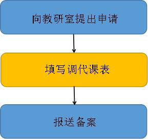 首先个人向教研室提出申请,到本系教学部门填写调代课表一式三份,一份存系,及时各报送一份到教务处、督导室备查。