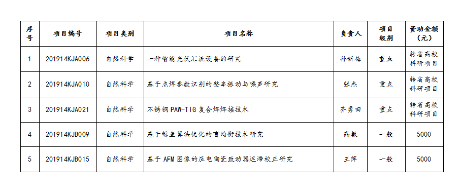 sunbet申搏 2019年度省高校科研项目、校级科研项目
