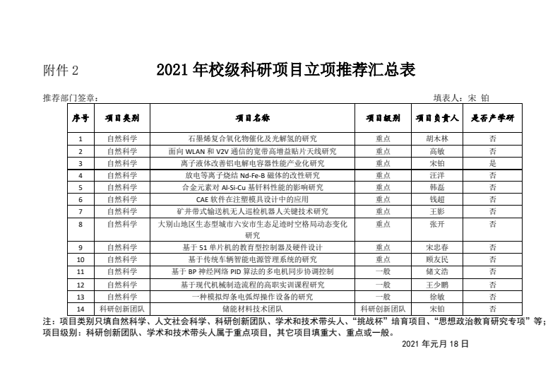 2021年校级科研项目sunbet申搏内部评审及统计工作已基本结束,本次项目申报共有13位老师申请了14个项目,经门户系统的教科研在线评审,公司项目均在C级以上,符合推荐,予以全部推荐。现将推荐结果予以公示(见附件)。