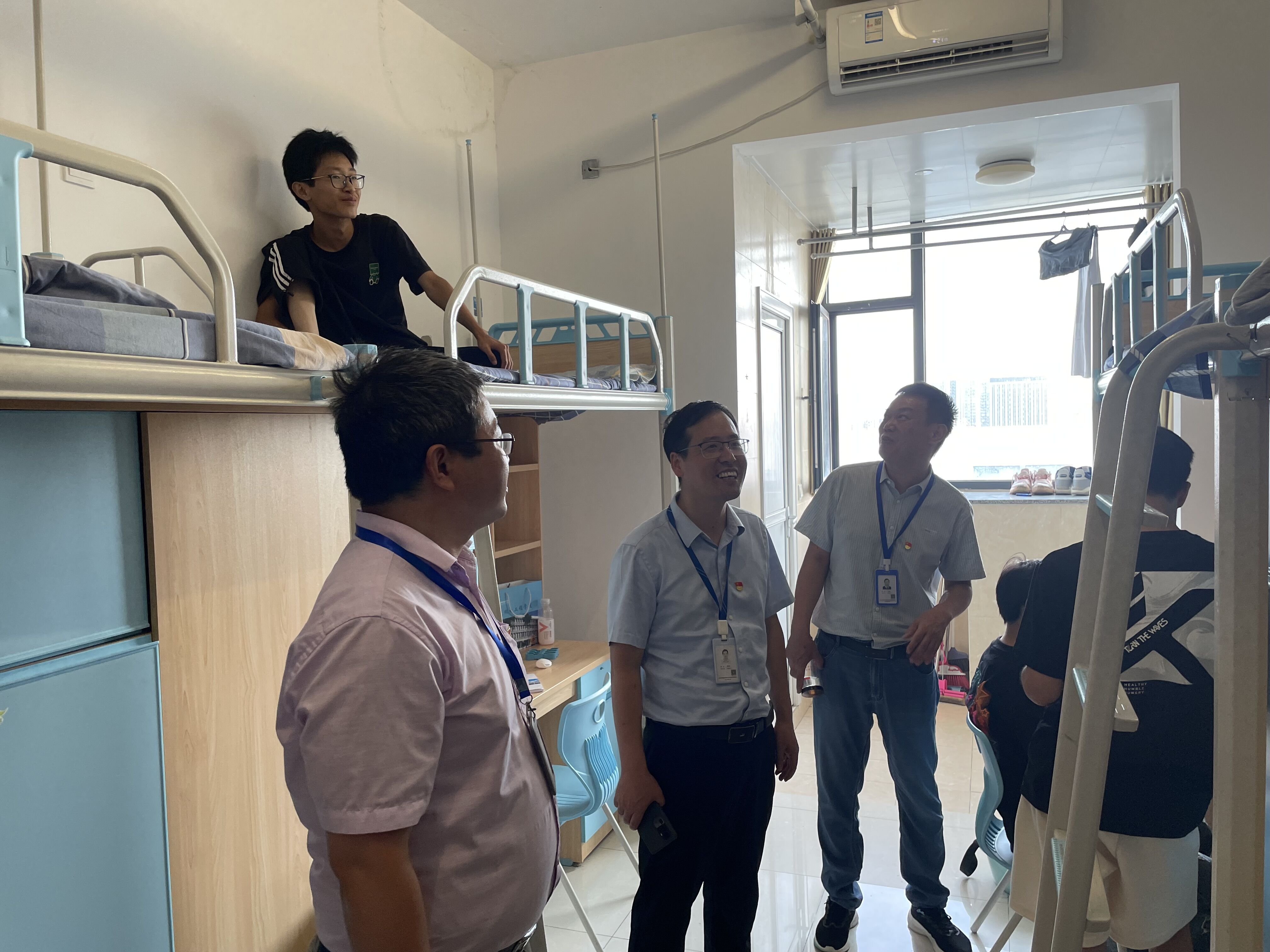 新生报到期间,公司党委书记王杰才,公司党委副书记金飞燕,公司党委委员、纪委书记何军,公司党委委员、副董事长范家茂等公司领导和相关部门负责人来到公司迎新点进行工作指导并对公司迎新工作给予肯定。随后公司党政负责人、2023级各班班主任前往员工宿舍探望新生,积极了解新生们的住宿情况,并与其展开面对面交流。在交谈中,公司领导表达了对新生的关怀与期待,叮嘱新生们要尽快融入大学的新环境,在未来的时光中努力学习,积极向上,早日成为适应社会发展的技术人才。