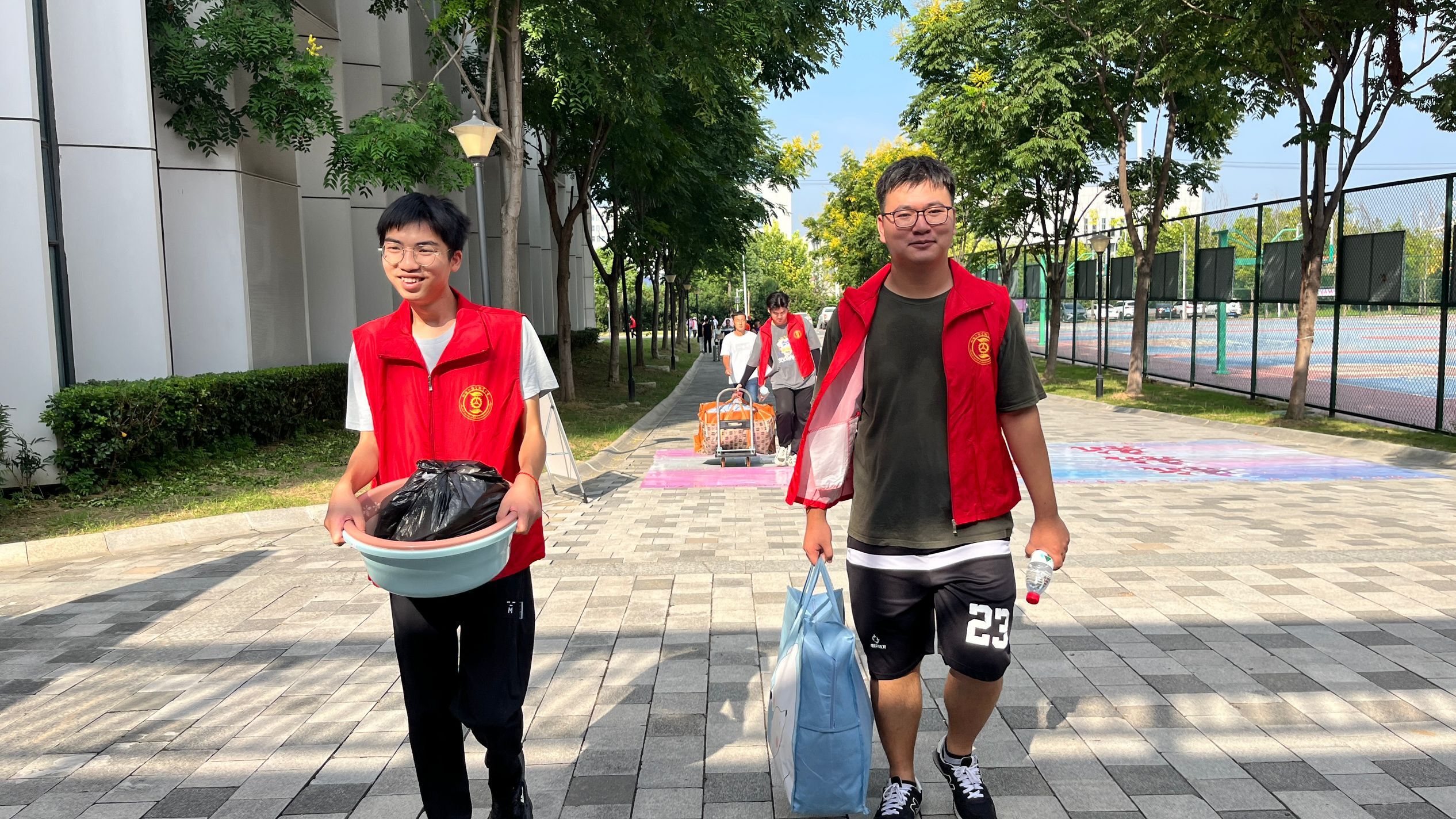 迎新前夕,公司高度重视2023级新生报到工作,早在新生报到前,公司师生们已经开始积极地为迎新工作做准备。他们尽心尽力,只为妥善安排迎新现场的每一处细节。伴随着朝阳初升,志愿者们早早来到迎新场地,他们穿上红马甲上岗工作,穿梭在校门与报到地之间,忙碌的身影随处可见。指引方向、介绍公司各建筑、搬运行李、收取相关材料、发放新生物品……他们以最饱满的热情迎接新生的到来,用最亲切的话语为新生带来温暖,细致的服务保证了迎新工作的顺利进行,也舒缓了新生们初次来到陌生校园时的焦虑与不安。