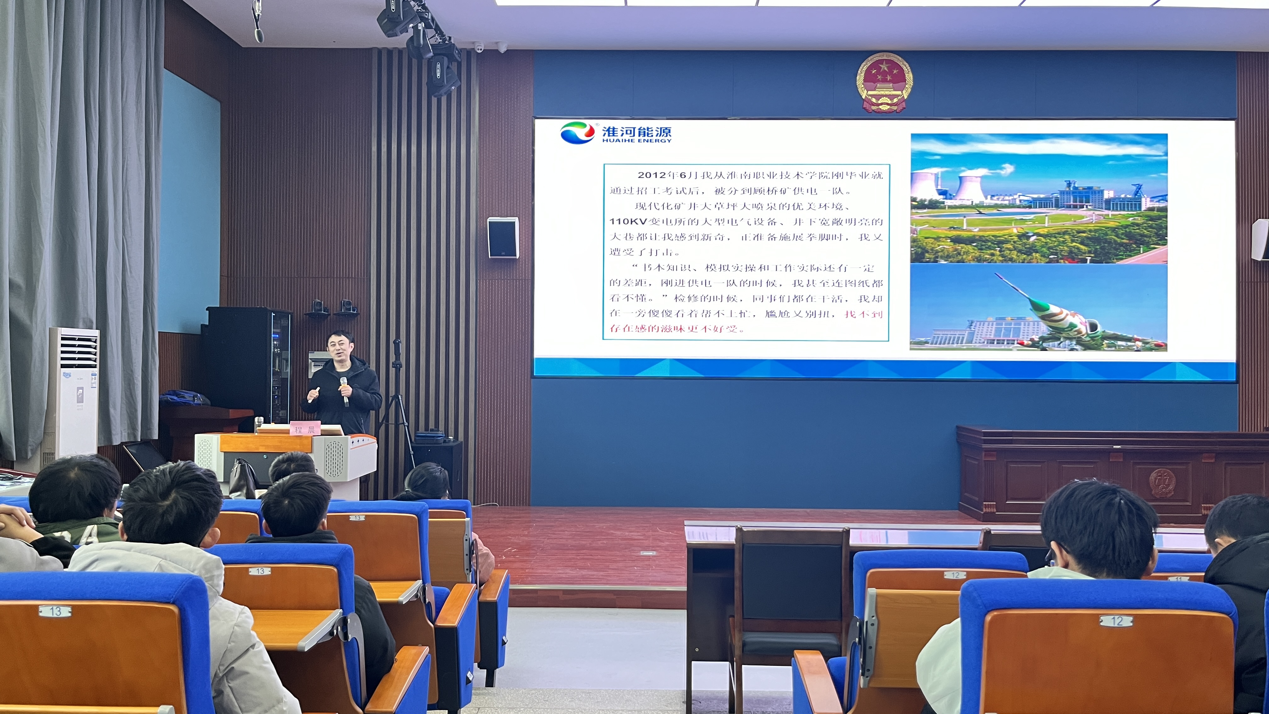 为进一步加强榜样引领,宣传先进,做好员工劳动意识培养、职业素养强化,12月20日下午,sunbet申搏在北教思政馆举办了“匠师进校园”宣讲报告会活动。此次报告会由全国五一劳动奖章获得者、淮河能源集团资深技师程晨同志给大家做分享,公司近200名师生共同聆听了这场精彩纷呈的报告会。