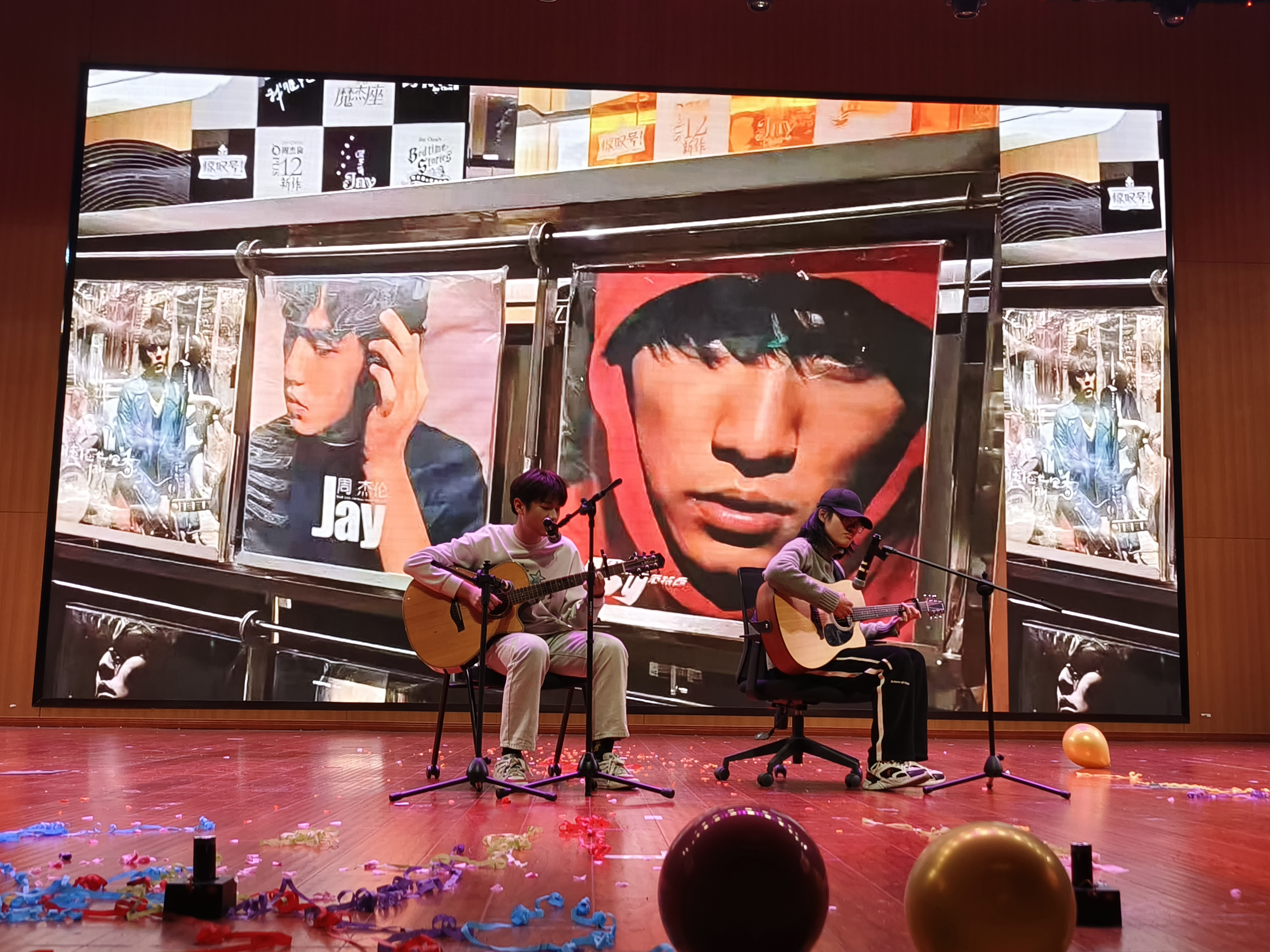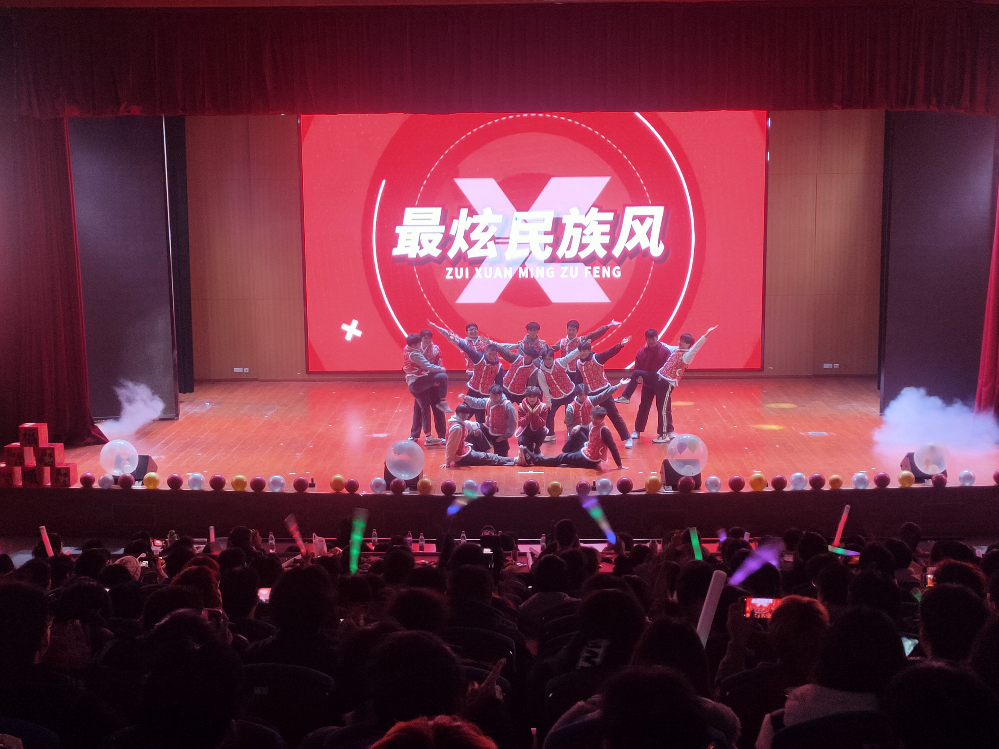 灯光聚焦,青春的热情率先在舞台上点燃。由雷宁老师和24级全体班长带来的开场舞《妙舞星河》拉开了晚会的序幕。他们灵动的舞姿与唯美的画面完美融合,瞬间点燃了现场观众的热情,将大家带入了新年的欢乐氛围之中。经典粤语歌曲《月半小夜曲》被深情演绎,让观众沉浸在其悠扬的旋律中。吉他弹唱《退后》则凭借其巧妙的旋律和节奏变化,引领观众穿梭于那充满无限可能的青春时光,赢得了阵阵掌声。李卓芳、程梦欣带来的古风爵士舞凭借创意编排和民族元素,引领观众步入一个全新的舞蹈世界。小品《绽放自己》和情景剧《白雪公主奇幻历险记》凭借幽默风趣的表演成为晚会的一大亮点,演员们精彩的演绎引得在场观众笑声不断,掌声此起彼伏,同时也传递出勇敢面对内心恐惧、突破舒适区的积极正能量。