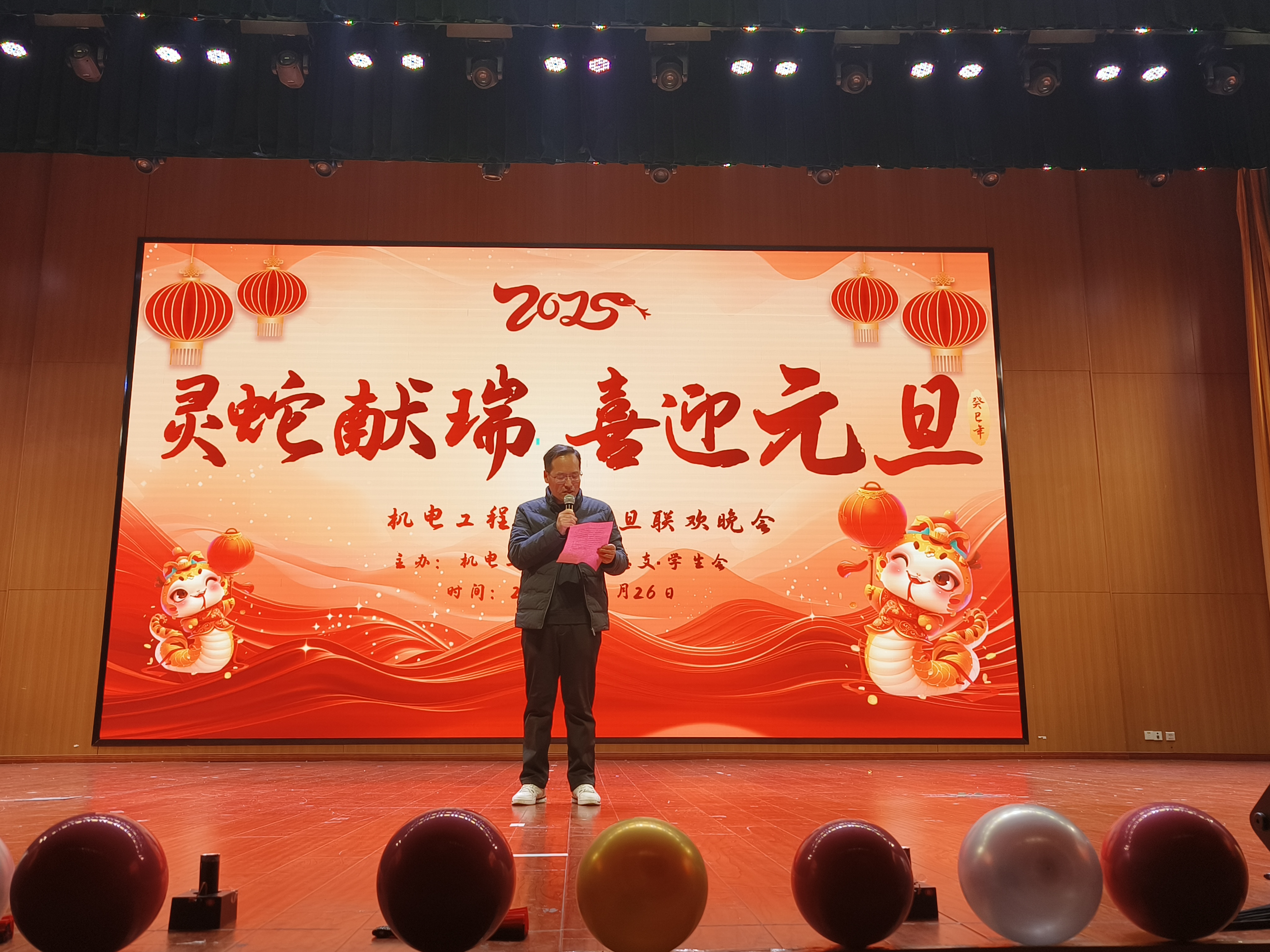 随着节日序曲的奏响,该院经理胡木林上台致辞,他衷心感谢为此次晚会付出努力的老师和同学们,并对机电公司这一年里在教学改革、科研创新及校园文化建设等多个方面取得的工作成果进行了回顾和总结,寄语全院师生在新的一年能够勇攀高峰,扬帆远航。