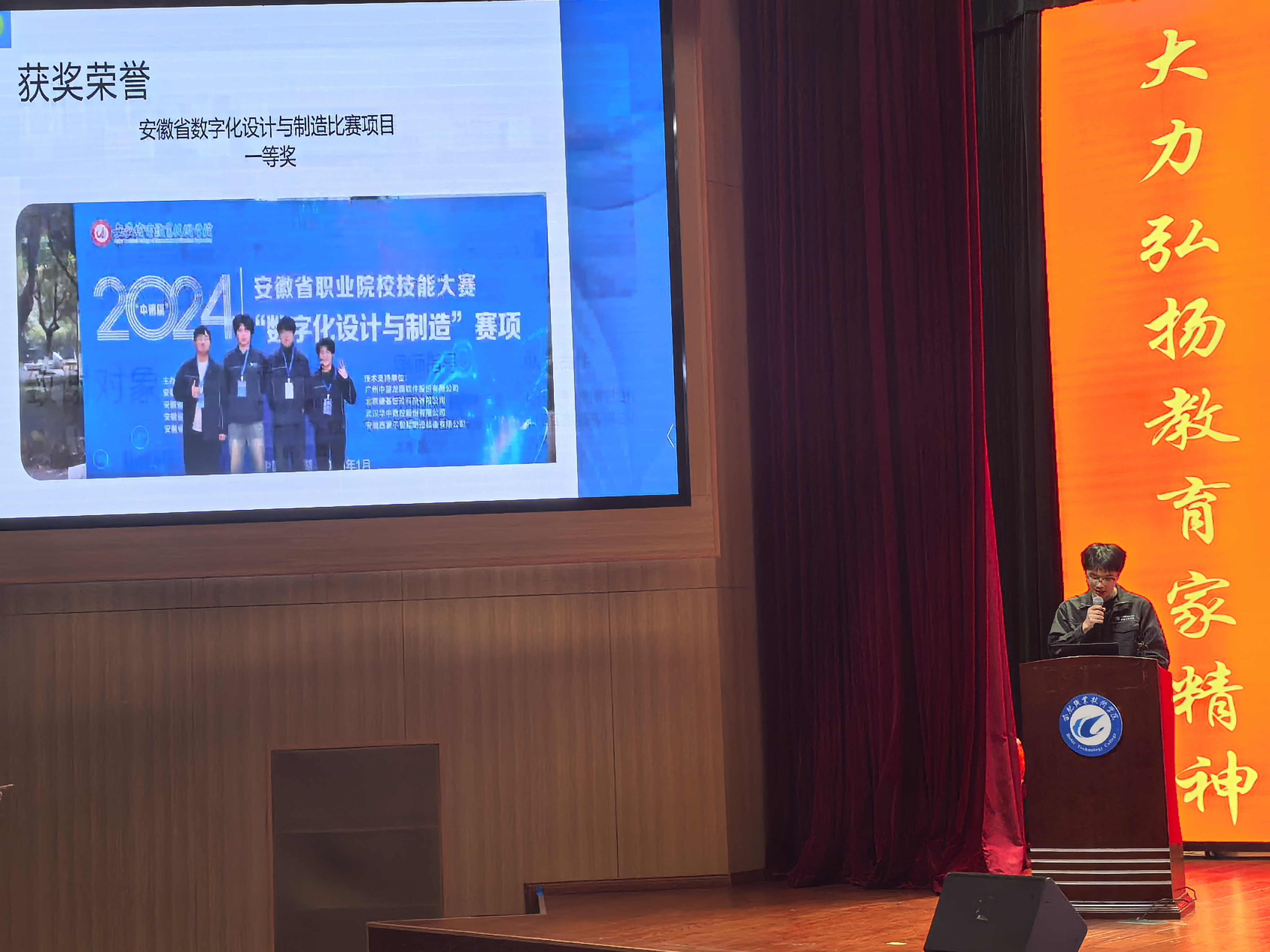 在2024年安徽省职业院校技能大赛中,sunbet申搏喜获一等奖2项。作为两支获奖团队的代表,23机械4班张世杰同学、23机电3班朱瑞同学分享了他们在备赛过程中的心路历程,包括赛制改革的应对、比赛方案的设置、遇到的困难、解决问题的方法等,并分享参赛的心得感受和赛后复盘的经验。