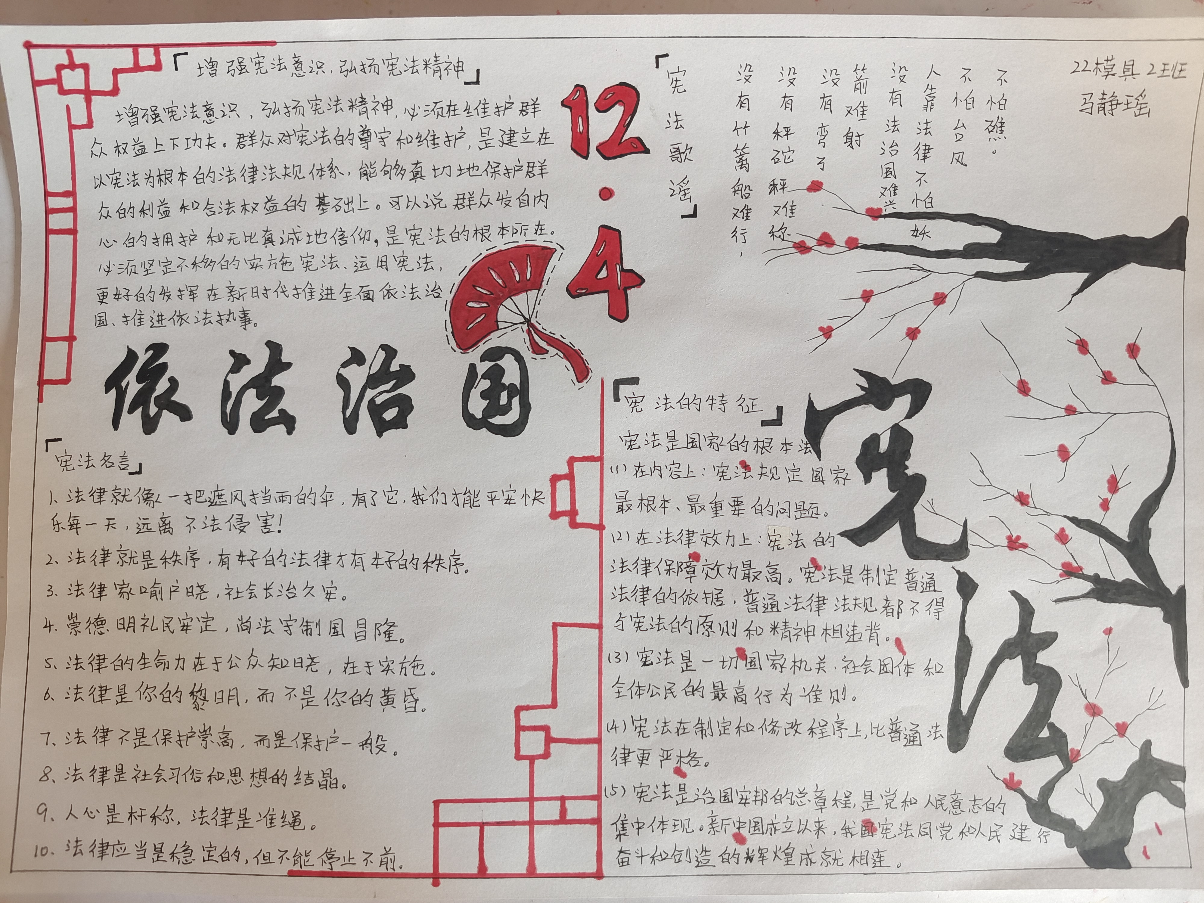 “学宪法”手抄报绘画活动。伴随着线下宪法知识竞答活动的举行,公司同步开展了“学宪法”手抄报绘画活动。活动采用线下收集、线上投票的方式,进一步营造了公司良好的法治教育氛围。通过一幅幅精美的手抄报,同学们用绘画的形式对宪法知识,特点,性质,地位等方面进行展示。