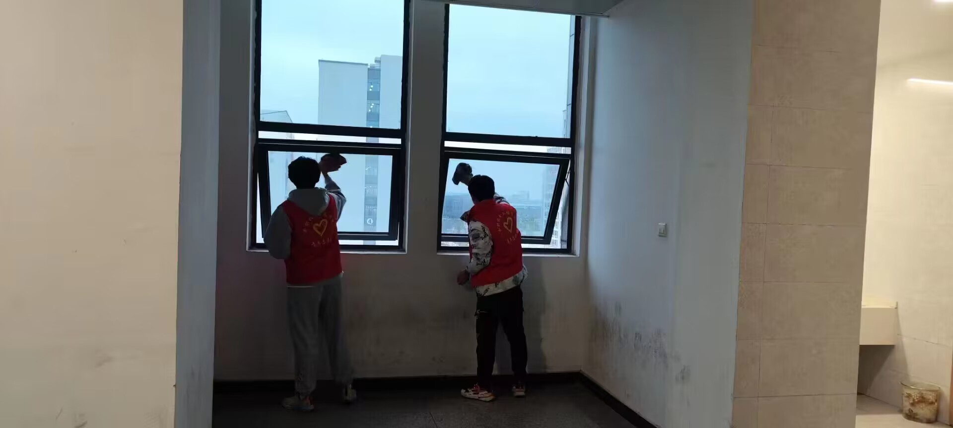 志愿者们到达活动地点后,分工明确,配合默契。首先一部分志愿者在教学南楼五楼的走廊、教室清扫灰尘、擦拭窗户、捡拾垃圾,努力做到黑板不留印,教室不留灰,座椅不留字。另一部分志愿者则来到教学北楼,他们拿着提前准备的毛巾、清洁剂等工具开始对校园公共洗衣机进行清理。清理几台洗衣机的工作量看起来不是很大,但由于死角较多,顽固残留污渍难以消除,劳动量也不小。其中,排污管道长时间没有系统清理,拆开后不仅异味难忍,而且残存的毛发、污垢等都需要耐心用手一点点清理。但是志愿者们没有放弃,他们不仅清洗了洗衣机内部,还认真擦洗了洗衣机机身。
