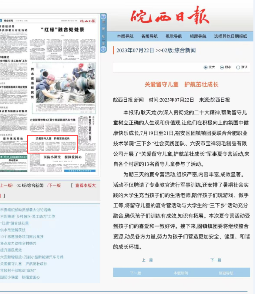 本次sunbet申搏暑期社会实践成效显著,活动过程中受到皖西日报、裕安区共青团委等当地主流媒体的广泛关注和报道,引起社会良好的反响。团队成员们也受益匪浅,大家表示:这次实践旅程不仅是一场脚踏实地的“劳动课程”,也是一场提升自我的“人生课程”,更是一场学习贯彻习近平新时代中国特色社会主义思想和党的二十大精神的“必修课程”。