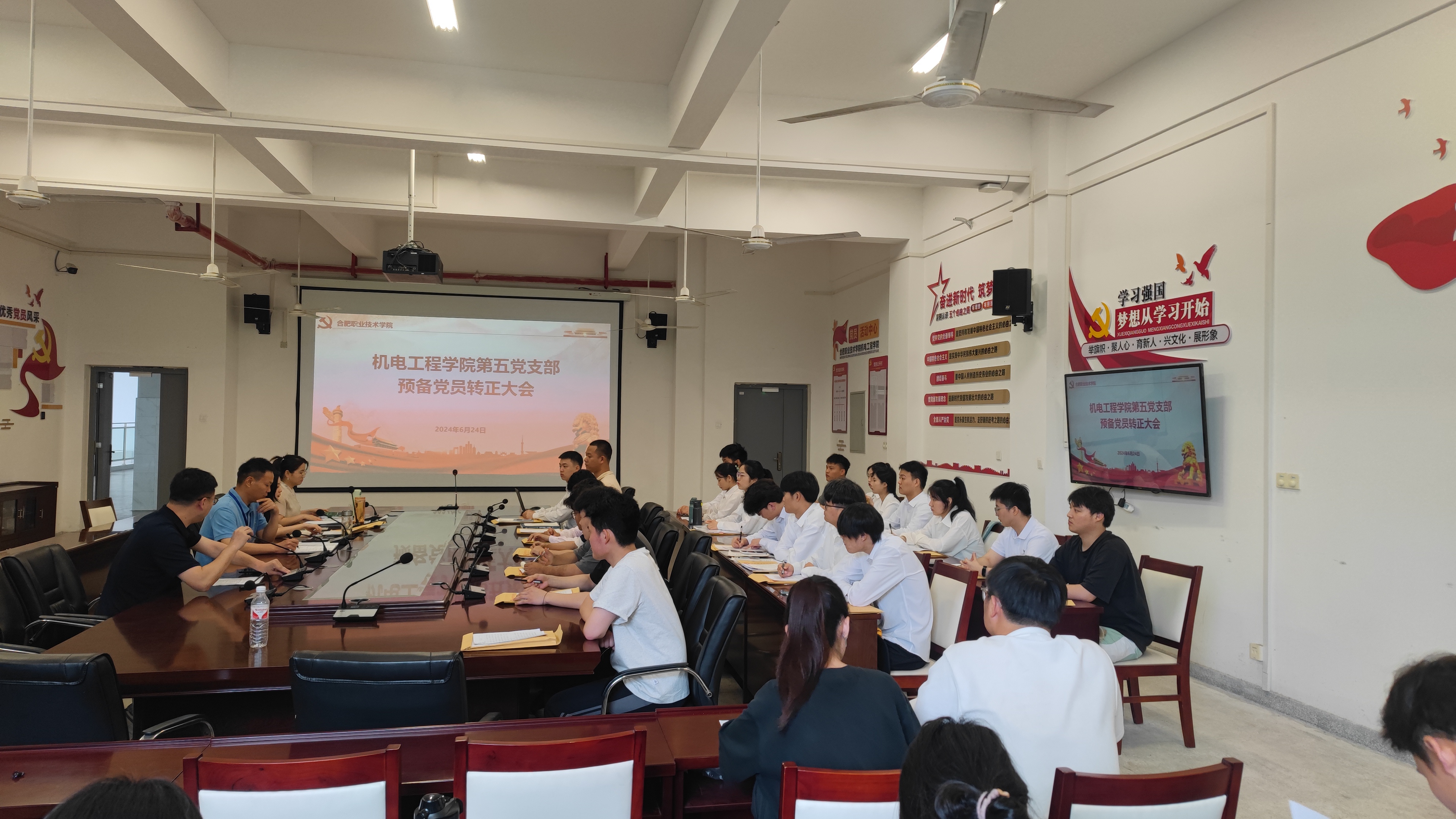 2024年6月24日上午,sunbet申搏第五党支部在机电楼二楼会议室隆重召开预备党员转正大会。此次会议由公司第五党支部书记张开主持,第五党支部全体党员及各入党介绍人参加。
